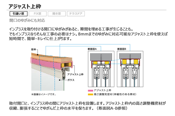 両端のH1とH3と、中央部H2との差が3mm以上、8mmまでなら、別途アジャスト上枠を付ける事で対応が可能です。